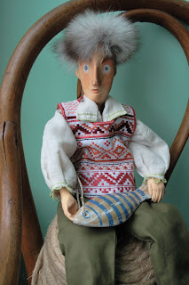 Marioneta realizada con pasta de papel (la cabeza, manos y pies)